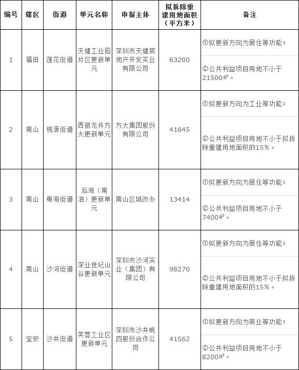 《2012年深圳市城市更新单元规划制定计划第一批计划》(草案)公布