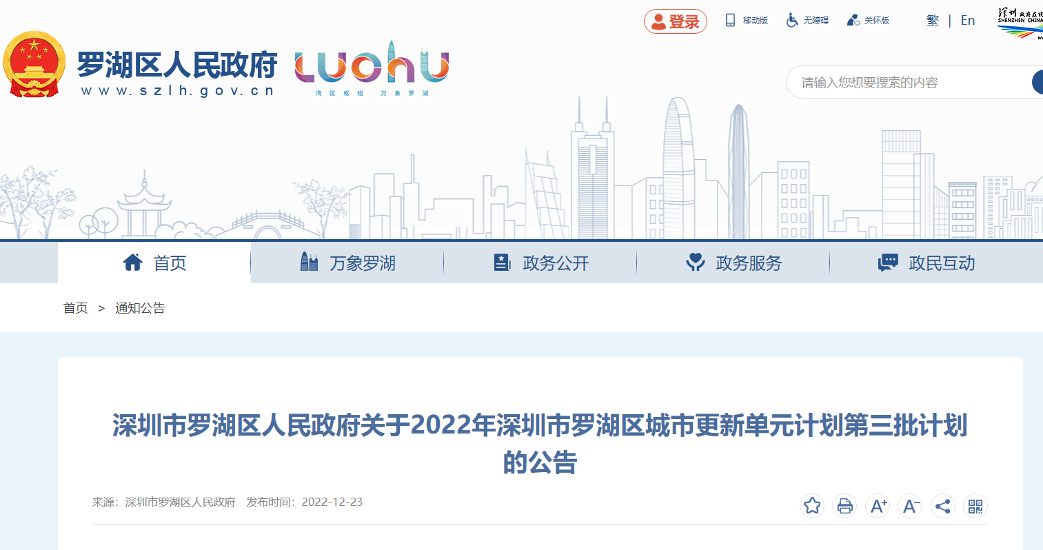 12月22日,深圳市罗湖区人民政府发布关于2022年深圳市罗湖区城市更新单元计划第三批计划的公告,该批次包含泥岗片区重点城市更新单元一个项目。泥岗片区重点城市更新单元已...