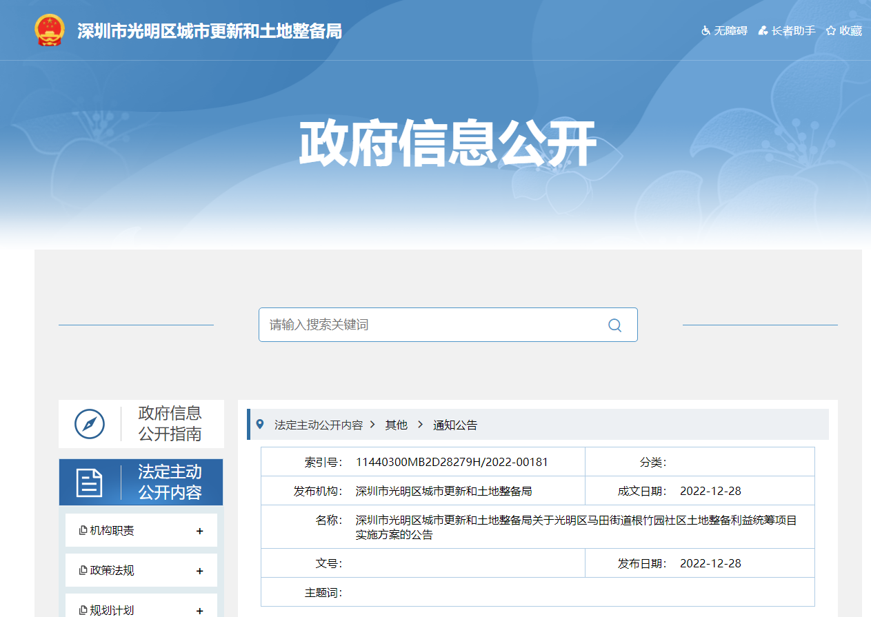 光明马田街道两大土地整备利益统筹项目实施方案公布