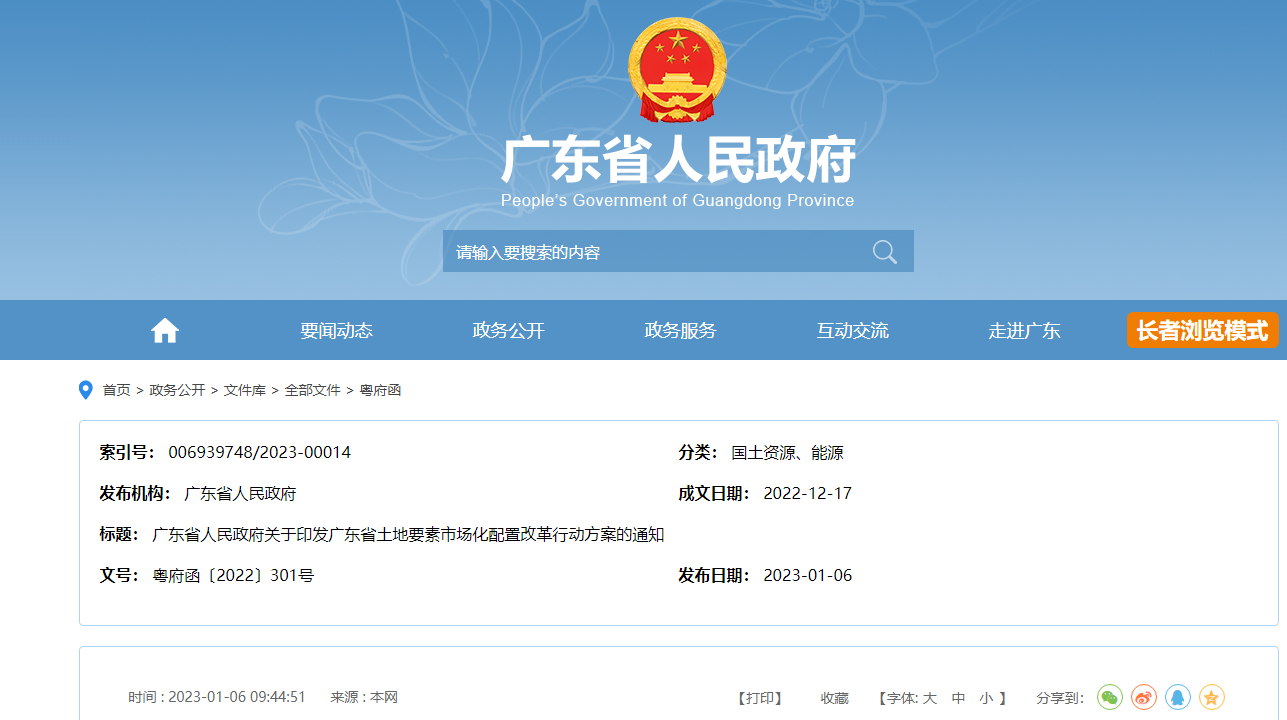 1月6日,广东省人民政府发布关于印发广东省土地要素市场化配置改革行动方案的通知。方案提出,到2023年底,广东土地要素市场化配置制度进一步健全,土地要素价格更加合理、...