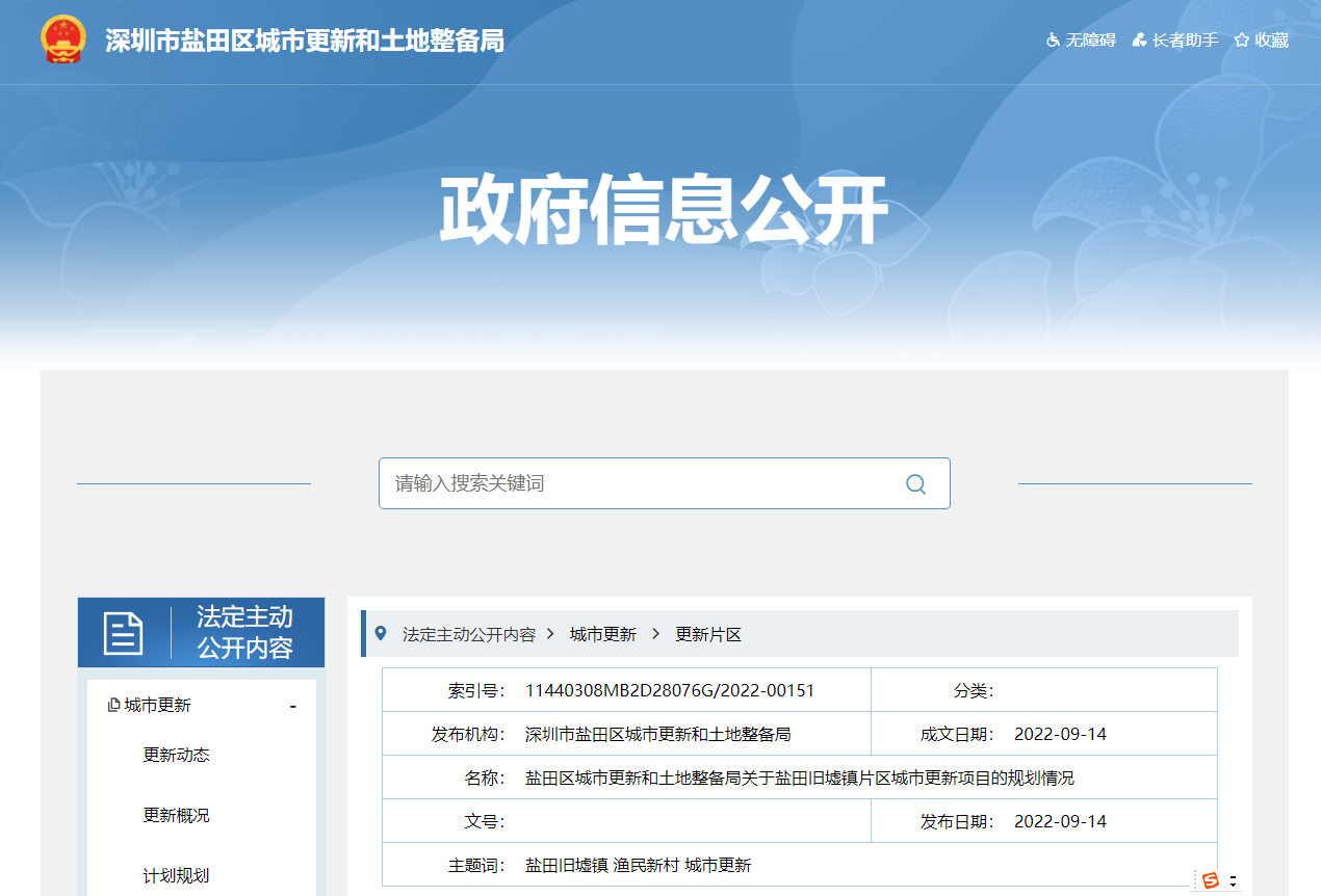 盐田旧墟镇片区旧改规划情况公布,规划容积超60万平