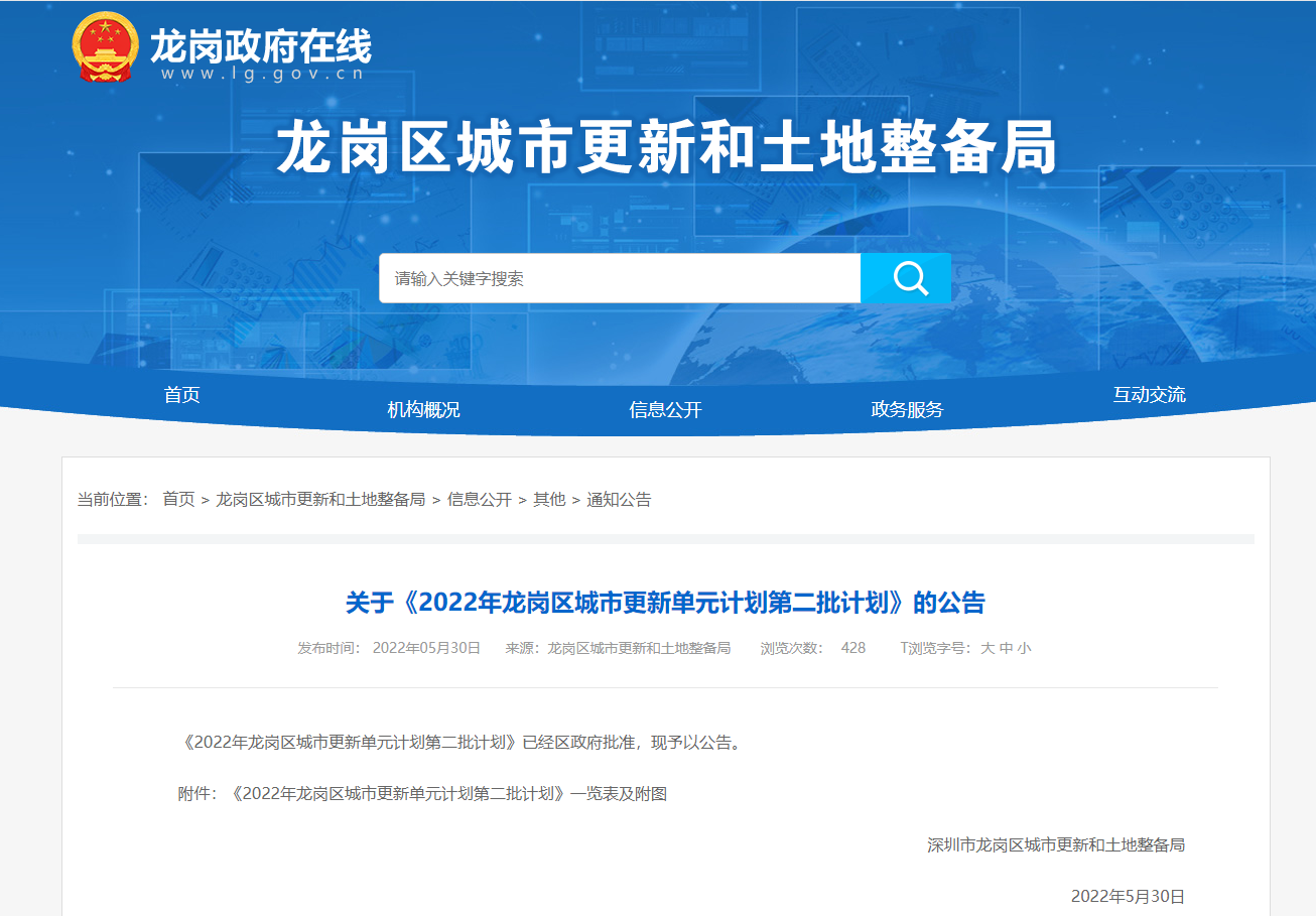 龙岗多个更新项目迎进展,计划草案公示
