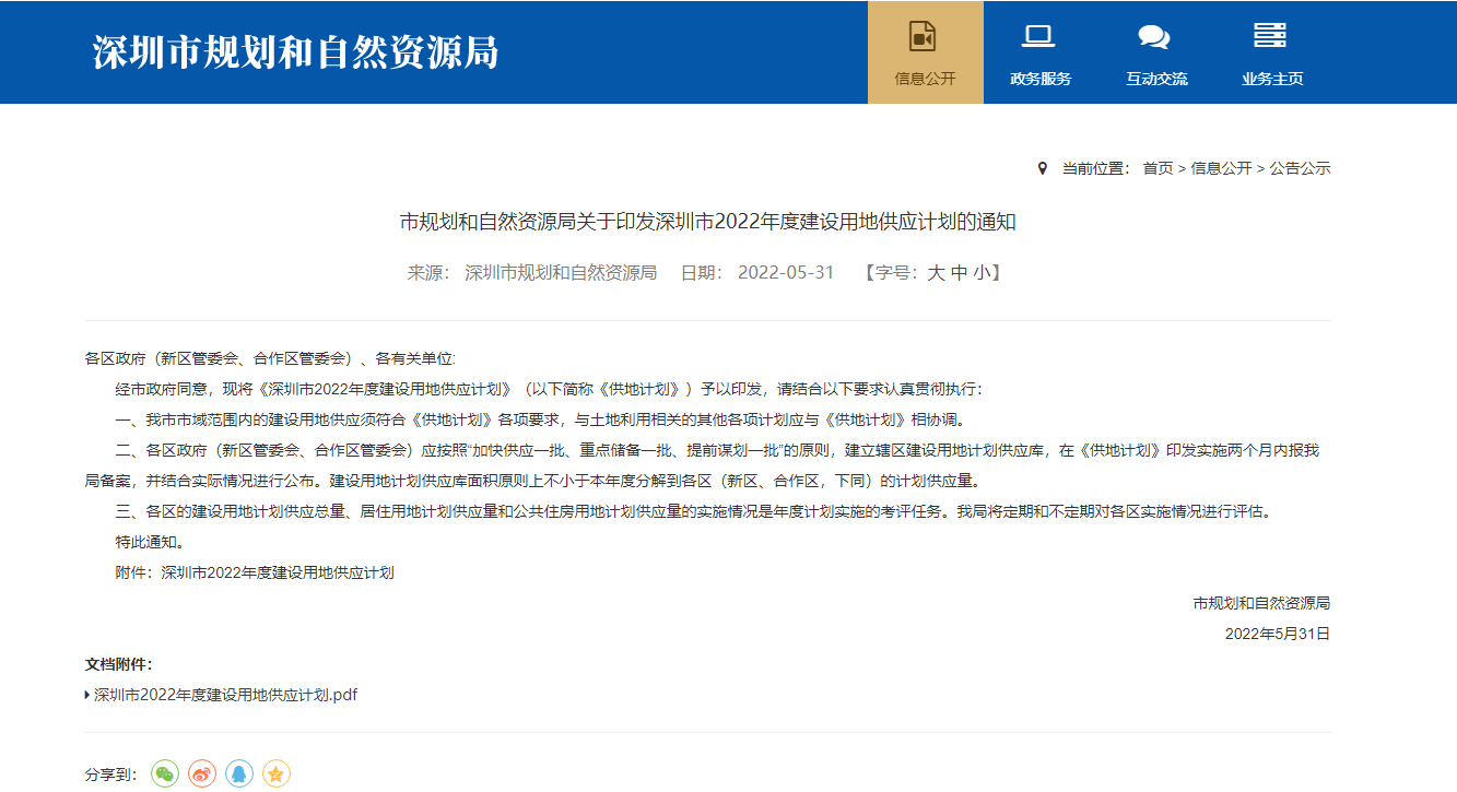 深圳2022年度建设用地供应计划出炉,计划供地12万平方公里!