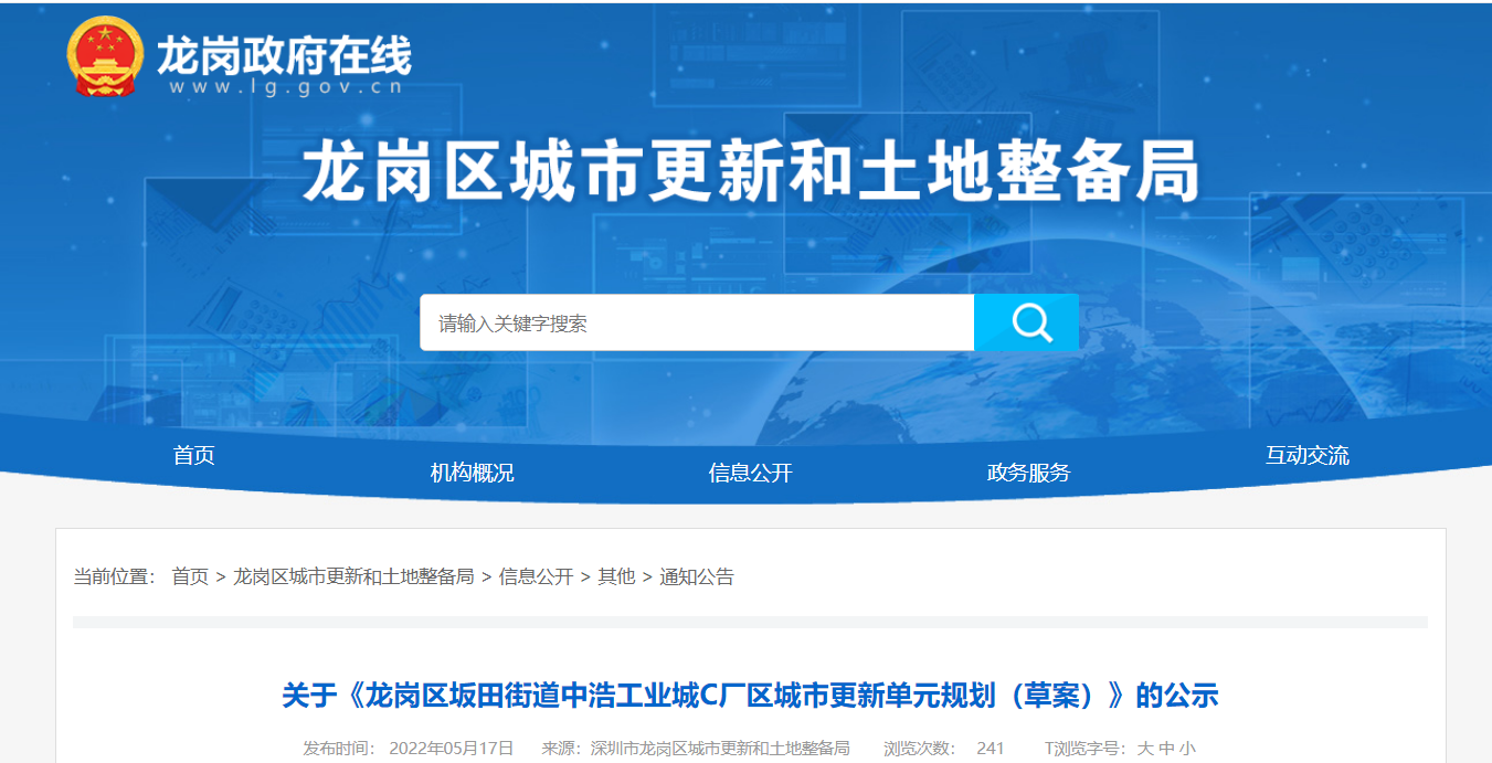 5月17日,深圳市龙岗区城市更新和土地整备局发布关于《龙岗区坂田街道中浩工业城C厂区城市更新单元规划(草案)》的公示。龙岗区坂田街道中浩工业城C厂区城市更新单元于2...