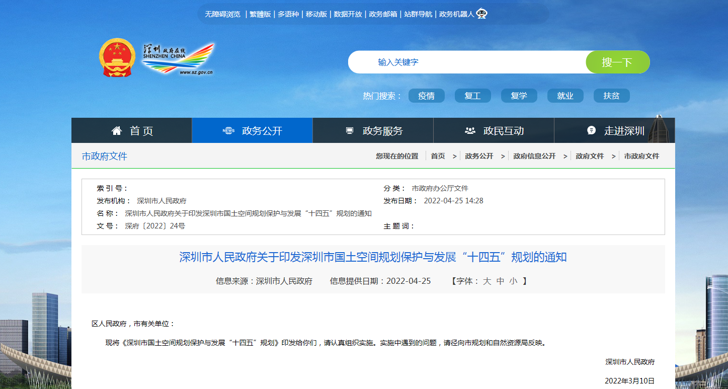 重磅!深圳市国土空间保护与发展“十四五”规划发布!