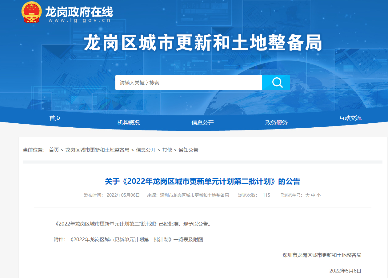 重磅!龙岗区2022年城市更新单元计划第二批计划出炉!共计八个项目