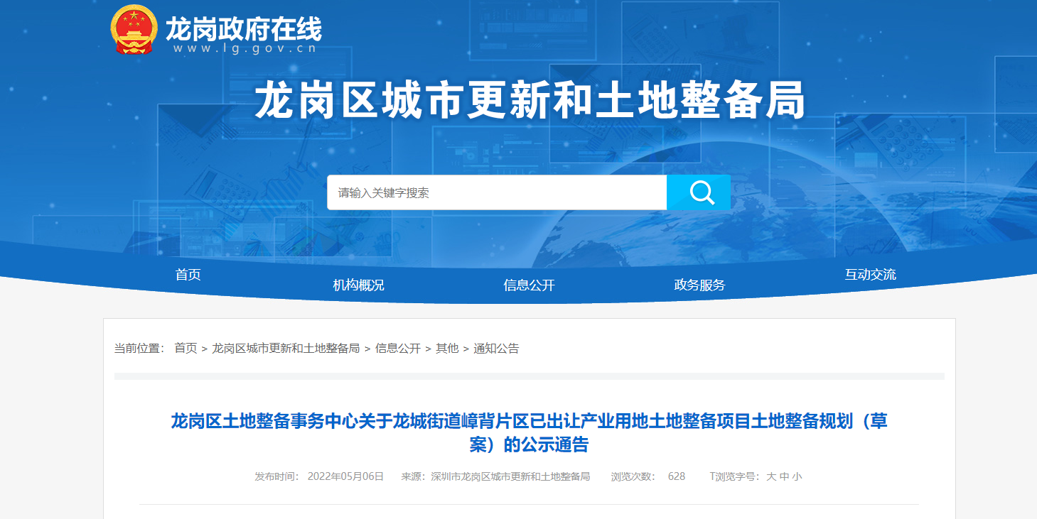 龙岗区嶂背片区已出让产业用地土地整备项目土地整备规划(草案)公示