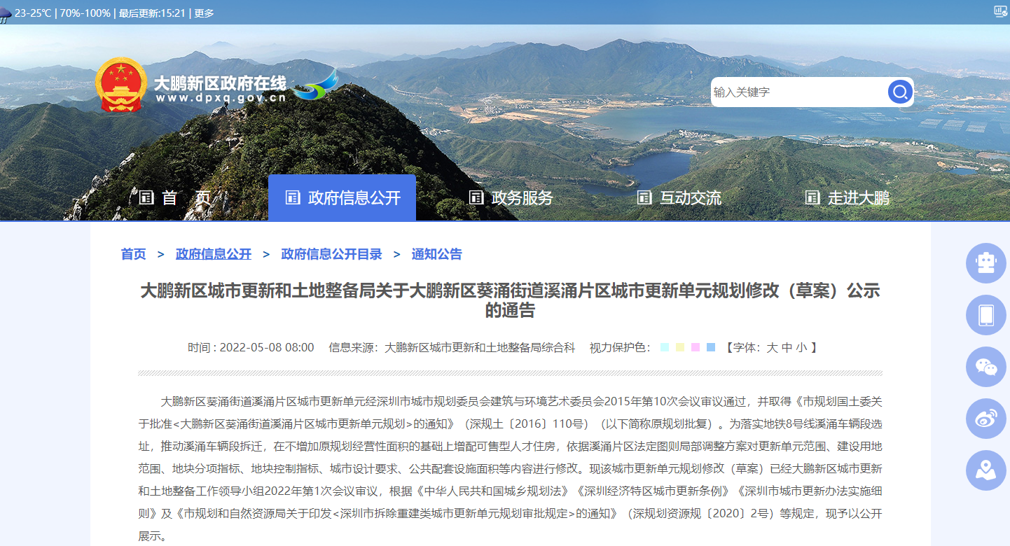 溪涌片区城市更新单元规划修改(草案)公示
