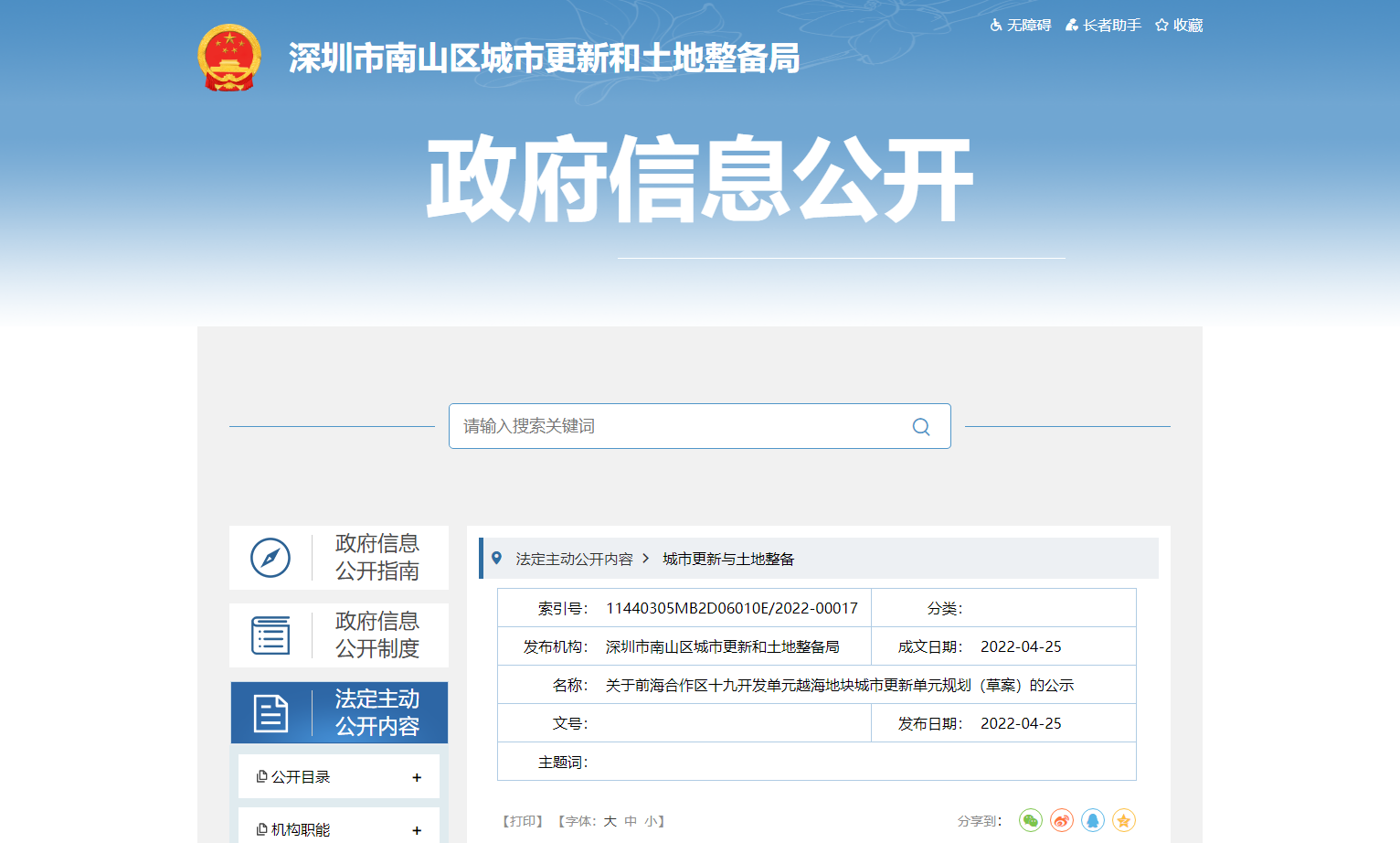 前海自贸区首个城市更新项目规划公示,越海全球物流主导