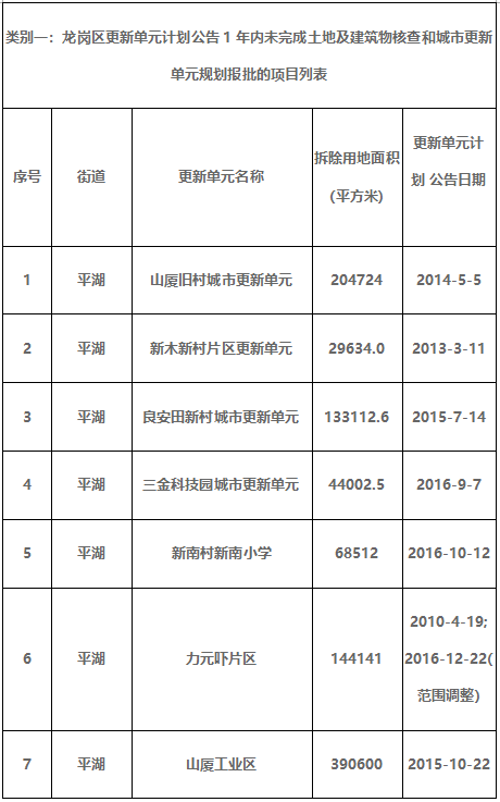 关于开展龙岗区城市更新单元计划清理工作的公告
