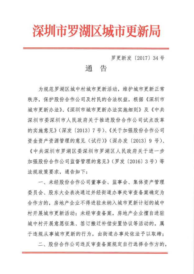 罗湖区出台城中村旧改新规,走平台前禁止开发商驻村开展城市更新活动