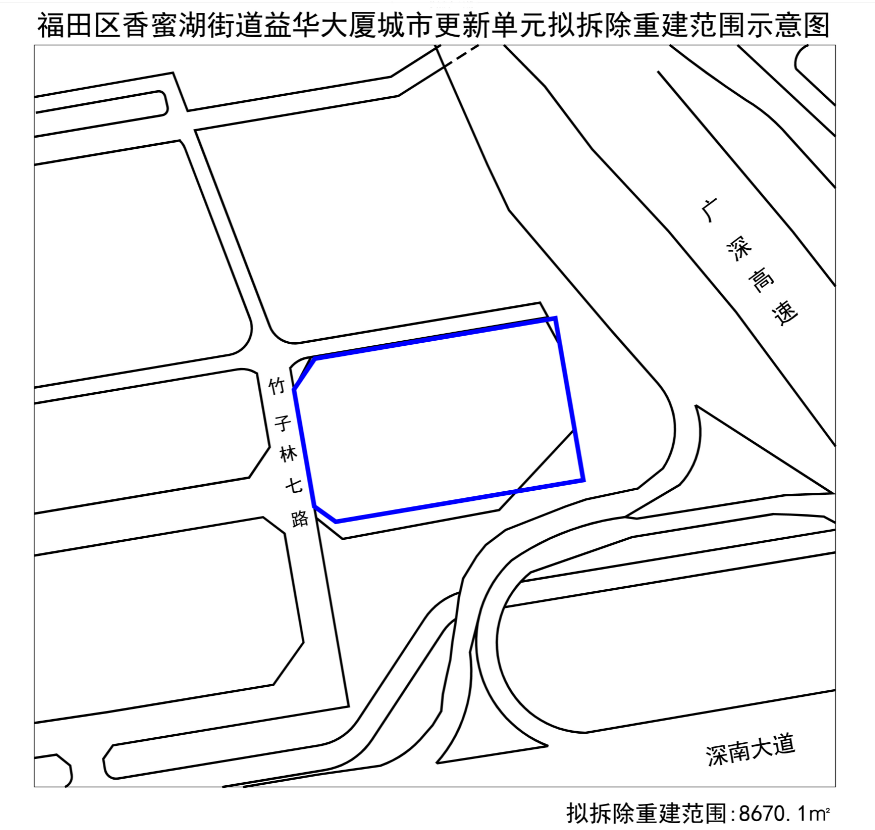 一、益华大厦城市更新单元计划公示福田区香蜜湖街道益华大厦城市更新单元位于福田区竹子林片区东南侧,广深高速与深南大道交汇处西北角,拟拆除范围用地面积8670.1㎡。该更...