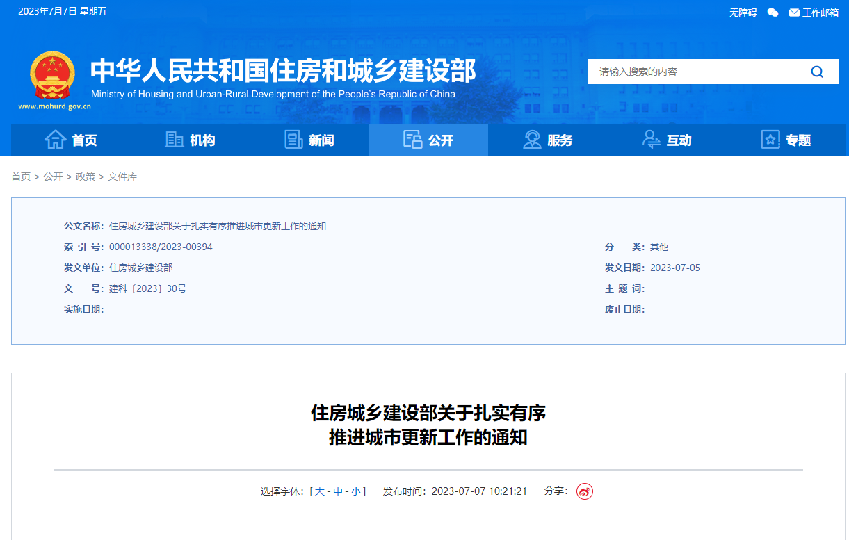 住建部:关于扎实推进2023年城镇老旧小区改造工作的通知