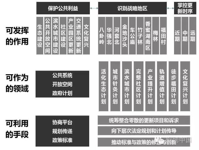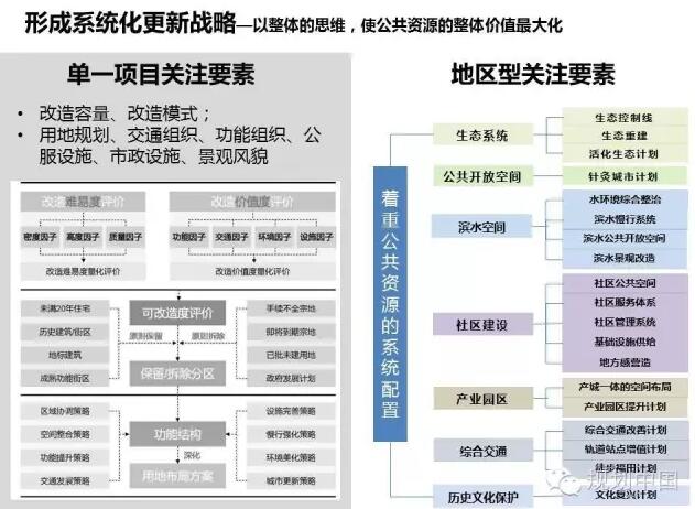 本文为中国城市规划设计研究院深圳分院研究中心主任、教授级高级城市规划师吕晓蓓与大家分享的做《深圳市福田区城市更新发展规划研究》的深度体会,感谢作者授权发布。感谢活动主办单位总工室等部门提供的资源支持! 城市更新的主要效益 自2012年开始深圳城市更新提供的土地超过新增建设用地。按照官方正式公布的数据,截至到2015年,深圳共综合整治了330多个城中村,总投入超过20亿元。5年供应房地产854万平方米,到2014年有9成以上的住宅用地来自城市更新。而且通过城市更新,还落实了中小学74所、幼儿园159所、医院2家、社康中心126家,并将提供1268万平方米的产业用房。这些官方数据让我们看到城市更新的确为深圳带来了非常明显的公共效益。 资料来源: 2015年5月19日深圳市规划国土委新闻发布会. 城市更新的主要挑战 今年,深圳开启了新一轮的城市总体规划工作,如果对比上一版总体规划,当年虽然城市空间约束的压力很大,但城市更新仍属于一种创新的土地供应方式,并未成为各个领域谋求空间供应的主流手段;而此轮总体规划调研中,城市发展空间不足的问题更加突出,但城市更新已经成为各级政府扩大建设规模、争取发展资源的重要手段。事实上如果把全市所有城市更新规划拟增加的建筑规模和提升的容积率叠加起来,结果都是惊人的。也可以想象,如果通过城市更新“再造一个南山”或“再造一个罗湖”的目标实现,则随之而来的高密度的人口集聚,会给城市公共服务增加多大的压力?也正是这个原因,很多人对城市更新的速度和规模都提出了不同程度的质疑。 另一方面,由于城市更新项目都分散在市场主体手中,希望通过更新实现的公共利益实际很难完全实现或者精准投放,市场逐利的冲动始终存在,也更愿意把更新的目标放在商业、写字楼、豪宅这些高利益领域。这也可能进一步增加商业和写字楼过剩的风险,而且可能导致工业用地“去制造业化”的趋势。 单纯依赖市场推进的城市更新已经暴露出明显的问题,因此未来城市更新仍需要强化政府的引导,特别是需要城市规划在以下方面更有效地管控城市更新,包括: • 总量调控——如何实现城市更新资源的“缓释” ? • 整体引导——如何避免更新导致的空间“碎片化”? • 功能管控——如何保证功能目标精准的城市更新? 福田开展全区城市更新规划的背景 福田地区是进入全面更新阶段的高密度大都市中心区,已开发建设用地已超过可开发面积的95%,建设用地人口密度和建设用地地均产值也非常高(据不完全统计,福田地区建设用地人口密度2.50万人/km2,全市1.11万人/ km2;福田地区建设用地地均产值54.59亿元/ km2,全市16.69亿元/ km2)。整个福田区正在运行的城市更新项目数量大,且分布零散,亟待统筹与整合。因此项目核心的切入点是,如何提出一个既能兼顾更新和发展,也能兼顾市场诉求和政府目标,并能统筹分散项目和城市整体公共利益的城市更新规划方案和行动计划。这也促使我们进一步思考,在城市全面进入更新阶段的时候,全区更新规划是否可以替代以前的分区规划,那么此类区域更新规划可发挥的作用是什么?我们可作为的领域是什么?以及更新规划可以利用的手段又是什么? 通过以上三个问题,我们建构了整个规划的思路。首先在可发挥的作用方面,我们希望这次区域层面的更新规划,能够起到一个保护公共利益、识别战略地区以及掌控更新时序的作用。可作为的领域主要集中在政府的公共系统、开放空间以及政府可实施的行动计划。可利用的手段主要是通过更新,搭建一个可协商的平台以及通过更新进行城市规划的传递,提出对政策标准的创新性建议。 1 可发挥的作用 在具体方法方面,我们与以往区域层面的总体规划不同,在识别现状问题的时候,我们主要是全面梳理城市更新可掌控的资源,如城中村,我们要了解更新诉求与权属关系;旧工业区,要看产出效益与出让年限;旧居住区,要看现在环境品质和建设质量如何?是不是真正已经到了更新的阶段(比如旧居住区是否存在建筑质量低下、人居环境恶劣、甚至已经危及公共安全的问题)。 我们用法定图则的标准分区整合了现有非常零散的、上百个更新项目,把全区正在进行的公共事业,包括学校、教育机构、医院以及产业发展诉求等等整合到所有更新项目当中,希望了解到底有什么样的更新资源能够为公共事业发展提供新空间。 我们将更新诉求返回到以控规为标准分区的新规划体系中,也是希望本次更新规划能够落实在现行法定的规划体系中,才能发挥真正的实施和管控作用。规划还识别了八个重要的城市更新地区,提出了城市更新指引,包括现状情况、主要问题、目标定位、更新策略(包括功能划分、结构布局、交通系统及其他重大策略)、时序计划(开发时序及近期推进更新工作的专项规划或重大建设计划)等等。 其中我们认为政府最应予以掌控的重点领域就是城市更新的时序计划,要主动识别那些是优先更新的地区,哪些是远期更新的地区,甚至哪些是不建议更新的地区。 2 可作为的空间 在可作为的空间里,我们也提出来可能要改变以往、单一城市更新项目的关注点。单一城市更新项目,我们一般会关注改造容量、改造模式、用地规划、交通组织,改造难易度的评价等等非常细化的、可量化的领域。 在地区型的更新