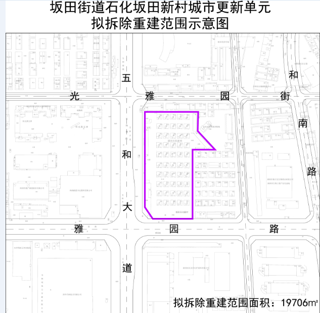 2、《龙岗区坂田街道石化坂田新村旧住宅区等城市更新单元计划》(草案)公示