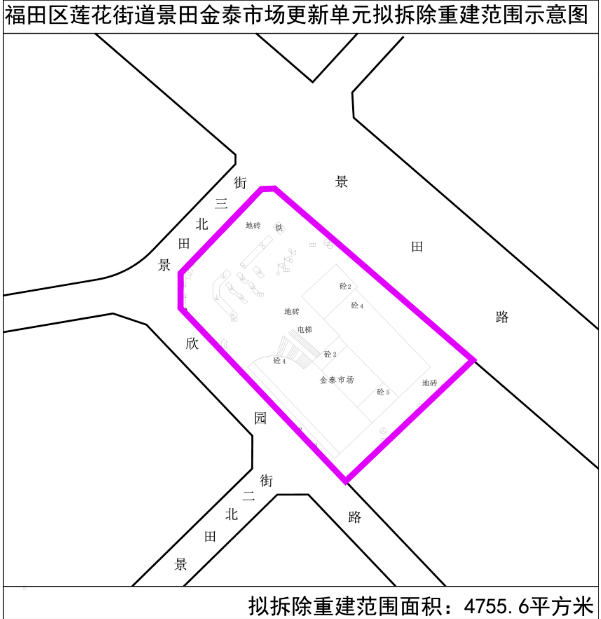 2 | 福田区 | 景田金泰市场城市更新单元 | 深圳市金泰园实业发展有限公司 | 4755.6平方米 | ① 拟更新方向为商业功能。 ② 应按小地块政策提供不小于拆除范围用地面积的30%的无偿移交给政府的独立用地,移交的土地除用于落实规划确定的城市基础设施、公共服务设施、城市公共利益项目等以外,其余部分按相关规定协议出让给项目实施主体按照规划进行建设。另按原土地使用权出让合同落实1600平方米绿地。 | |
