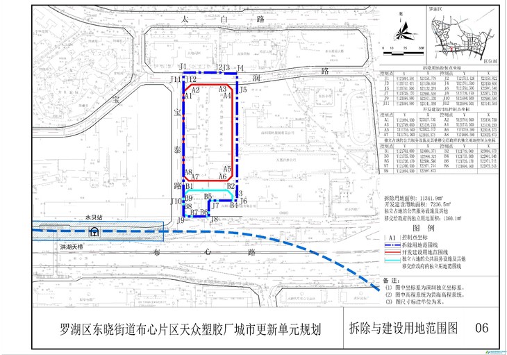 罗湖区东晓街道天众塑胶厂城市更新单元项目位于东晓街道布心路北侧,水贝地铁站东北角。目前该项目已获罗湖区人民政府核发的规划批准文件(罗府更新复〔2017〕2号):“拆除用地面积11341.9平方米,其中开发建设用地面积7236.5平方米。”