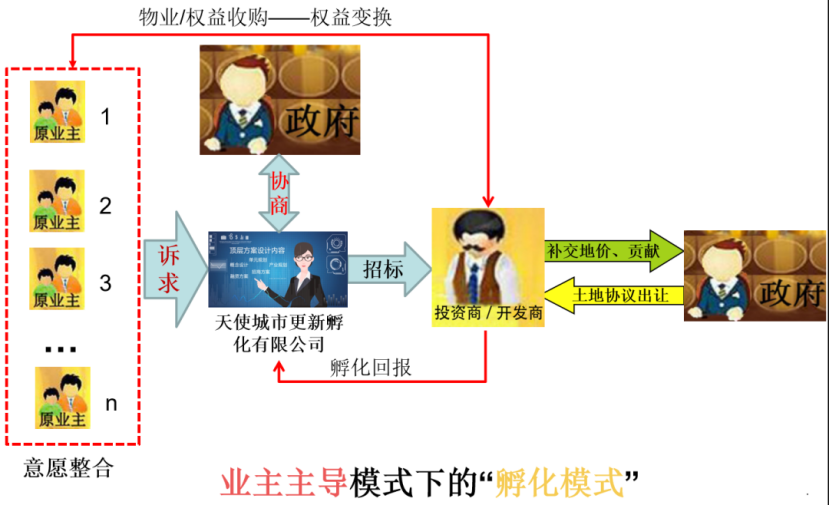 其实,发达国家走过的路早已表明,城市更新要从第一代的政府主导,再到第二代的市场主导,最终发展到政府-市场-社会多元参与合作第三代城市更新实施模式。城市更新网也于2018年提出了业主主导的城市更新项目孵化模式,并成立了专门的孵化公司——深圳市天使城市更新孵化公司。