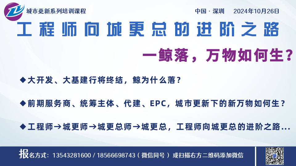 城市更新时代最突出的特征,是土地一级开发将由政府垄断向国企包揽、民资顺畅进入发展。在此发展方向下,土地一级开发的土地整理将逐步由资产整理取代。而前期服务商、统筹主体、一二级联动、F+EPC、城更总师、城更总等诸多新事物正逐渐诞生。这些新事物能否真正落地,能否繁荣,不走歪,最终取决于城市更新究竟是否走市场化道路。不能走市场化遇阻,就调头回去走行政化的老路......。